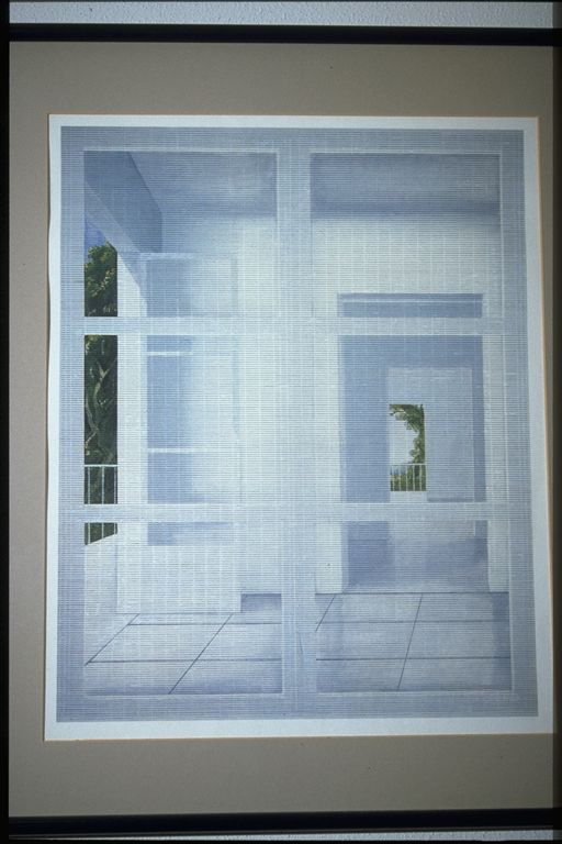 | Deskribapena: | Técnica: Litografía Materia-soporte: Papel Gran ventanal tras el cual se ve el interior de un inmueble vacío con las puertas abiertas. |