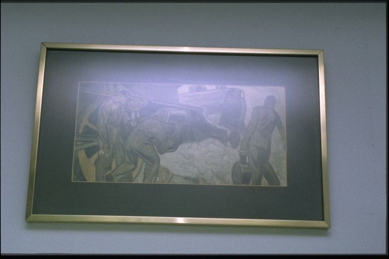 | Resumen: | Técnica: Litografía Materia-soporte: Papel Máquina del tren y obreros haciéndole las reparaciones de mantenimiento. |