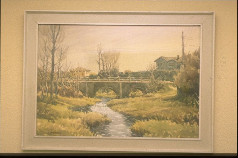 | Deskribapena: | Técnica: Acuarela Materia-soporte: Papel Paisaje con puente y río en el centro de la composición. Firmado en ángulo inferior izquierdo. |