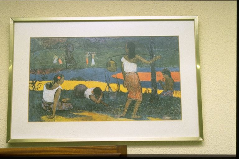 | Description: | Técnica: Litografía Materia-soporte: Papel Mujeres hawaianas reunidas conversando en el campo. |