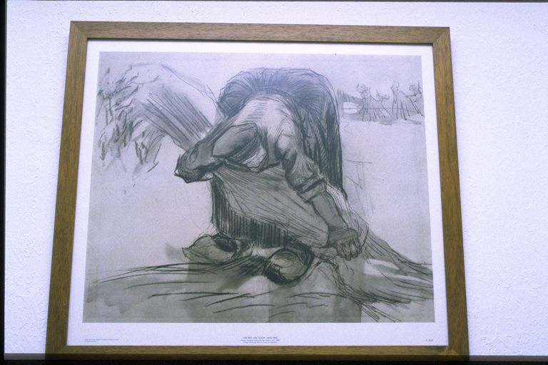 | Deskribapena: | Técnica: Litografía Materia-soporte: Papel Labrador agachado cogiendo un fardo de mies segada. |