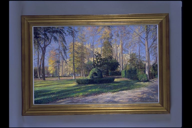 | Deskribapena: | Exposición Técnica: Óleo Materia-soporte: Lienzo Fecha de ejecución: 1996 Árboles otoñales con la Catedral al fondo. Firmado en ángulo inferior derecho. |