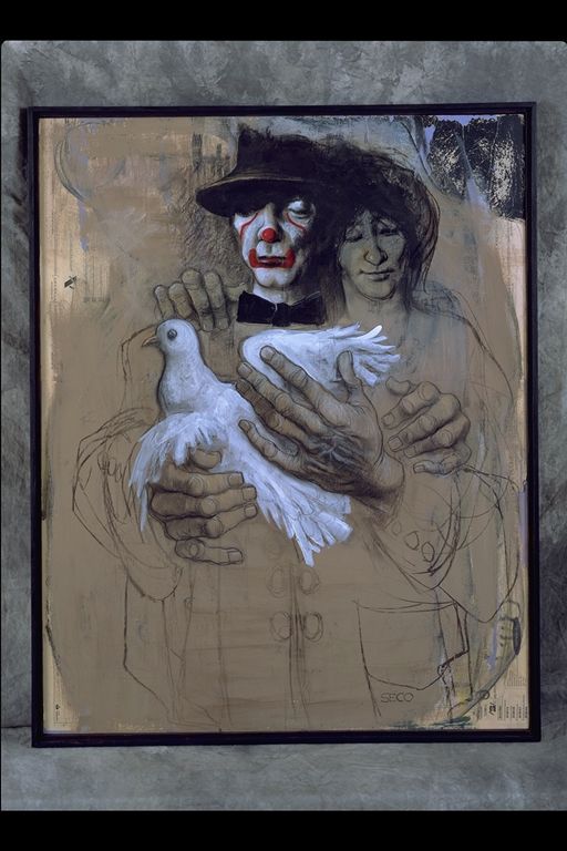 | Resumen: | Técnica: Óleo Materia-soporte: Tabla Fecha de ejecución: 1997 Payaso con gran paloma blanca en las manos. De la serie Escenas de Paz (Exposición). Firmado en ángulo inferior derecho. |