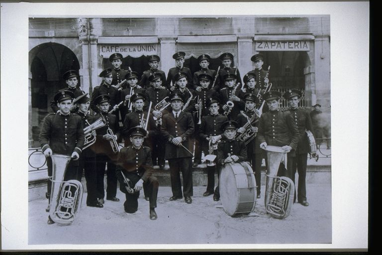 | Deskribapena: | Exposición Técnica: Fotografía B/N Materia-soporte: Papel fotográfico Foto de la banda en la Plaza España. |