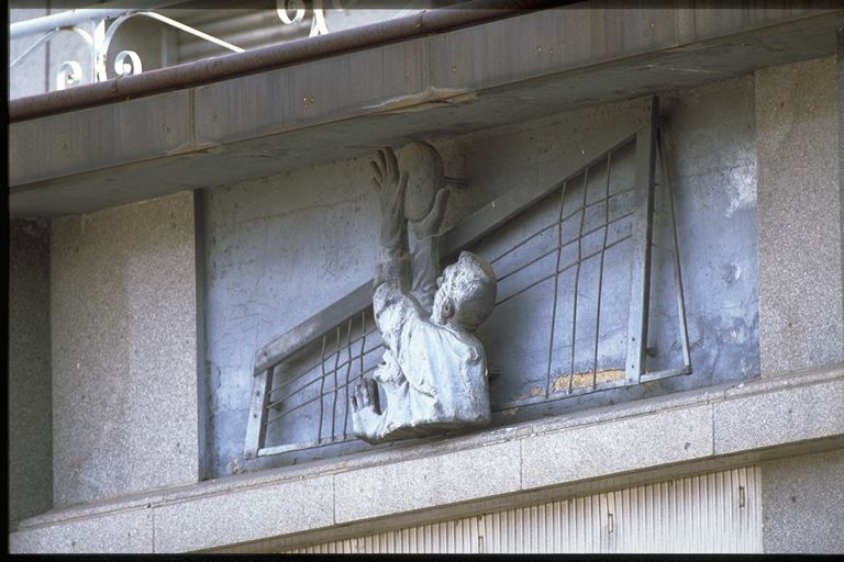 | Deskribapena: | Técnica: Fundición Materia-soporte: Aluminio Jugando al fútbol delante de la portería: dos jugadores, un portero salta y atrapa el balón. |