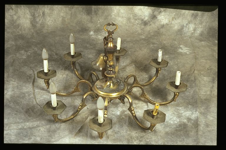 | Deskribapena: | Técnica: Fundición Materia-soporte: Bronce Lámpara de salón estilo inglés de 8 brazos. |