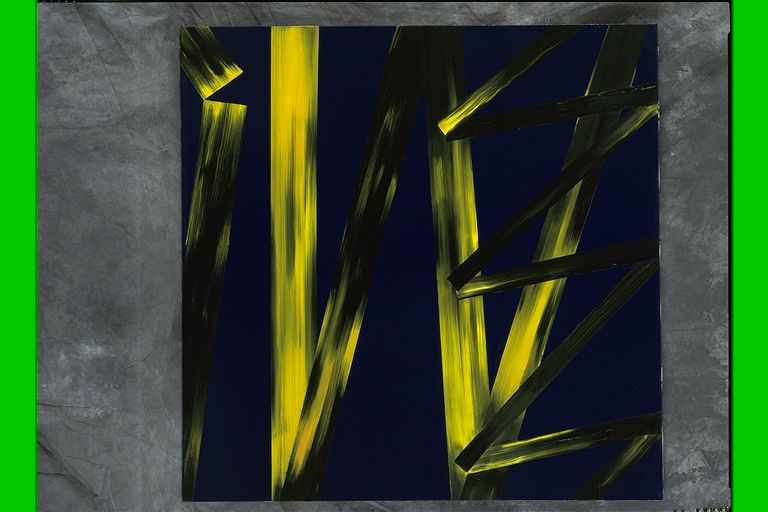 | Deskribapena: | Certamen Técnica: Mixta Materia-soporte: Lienzo Sobre fondo azul trazos negros y amarillos. Firmada en parte trasera. |