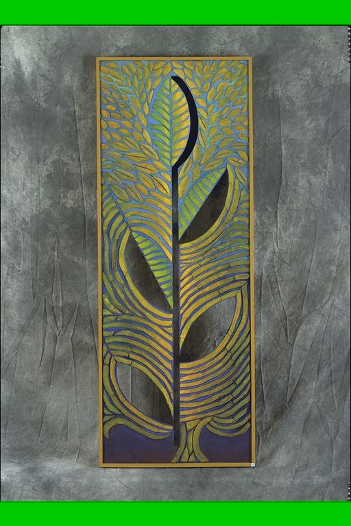 | Deskribapena: | Fecha de ejecución: 2002 Rama vertical con hojas, algunas están caladas. Firmada en ángulo inferior derecho y parte trasera. |