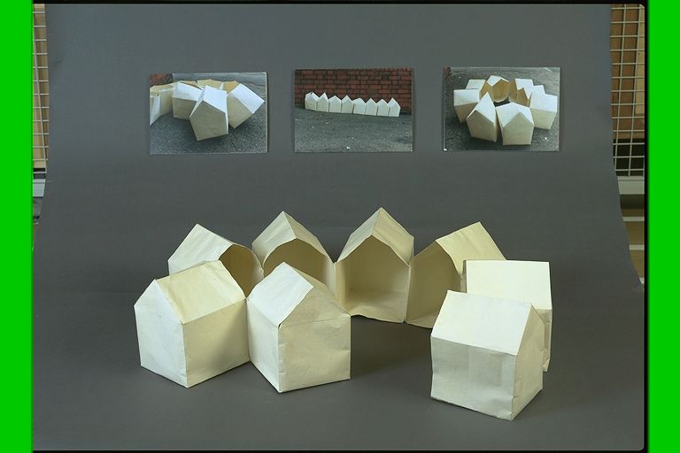 | Deskribapena: | Certamen de Arte Alavés. 1er premio Técnica: Papiroflexia Materia-soporte: Papel Fecha de ejecución: 2002 Utiliza elementos modulares que construye con cartulina permitiendo observar el interior vacío dado que no está cerrado por unas de sus caras. Uniendo por una arista varios módulos consigue totalizar un conjunto de interpretación múltiple, según la opción que se tome. La escultura presenta, por consiguiente, mil posibles interpretaciones a las que se puede dar una interpretación estética, social y psicológica. Expurgado Nota: la pieza ya no pertenece al Patrimonio de la Fundación Vital. |