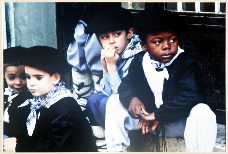 | Deskribapena: | Certamen Técnica: Fotografía color Materia-soporte: Papel fotográfico Niños vestidos de blusas sentados en la calle. |
