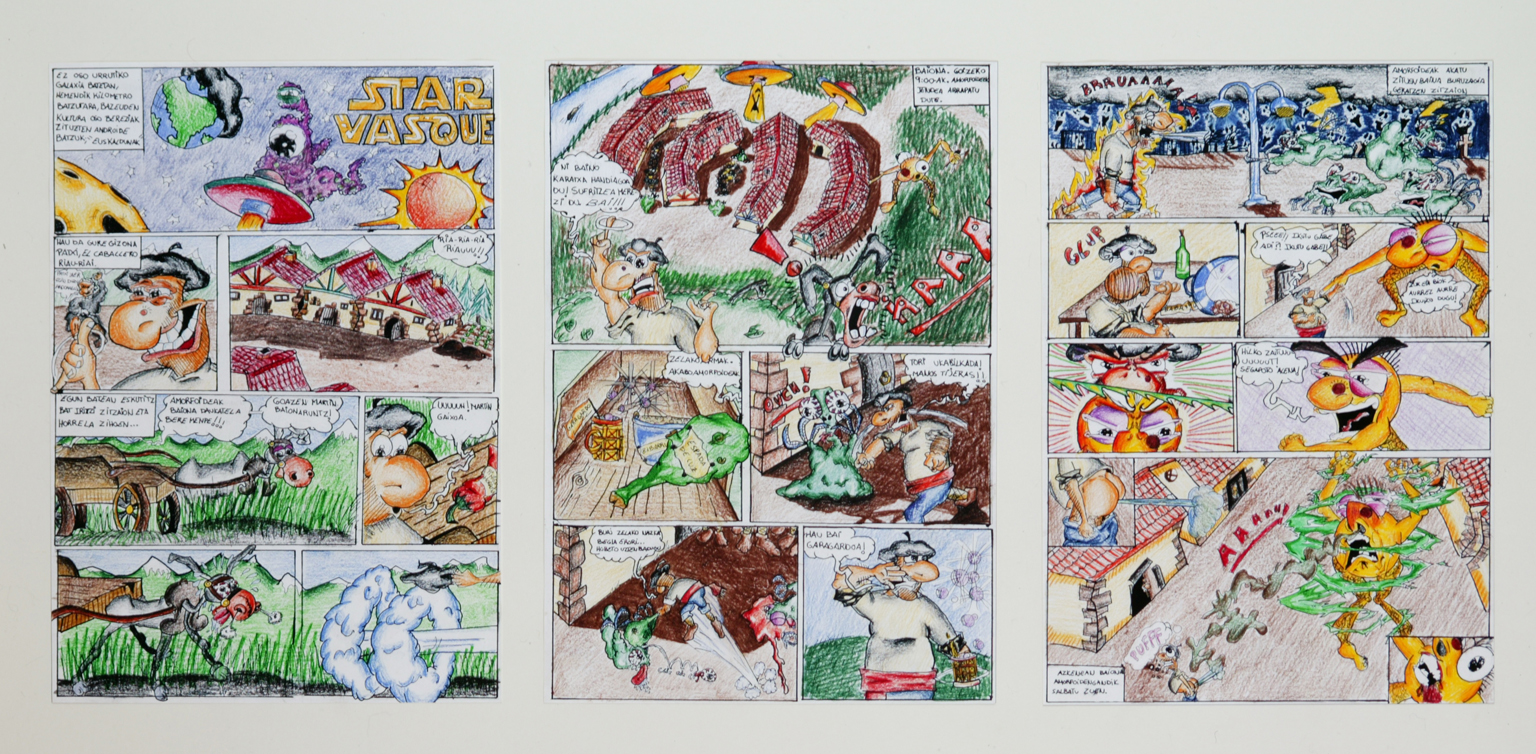 | Deskribapena: | XVIII Certamen Escolar de Cómic. 2º premio individual. Técnica: Dibujo color Materia-soporte: Papel Fecha de ejecución: 2001 3 pág. |