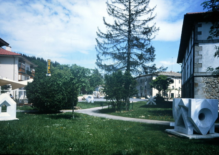 | Deskribapena: | Certamen fotográfico "Itinerario escultórico por Álava" 2001. Premiado. Técnica: Fotografía color Materia-soporte: Papel Fecha de ejecución: 2001 Cuadrilla de Zuia-Murguia (Álava). 4 piezas talladas en mármol blanco. Arquitectura y configuración del espacio con cuadrado, triángulo, cruz y circulo. |
