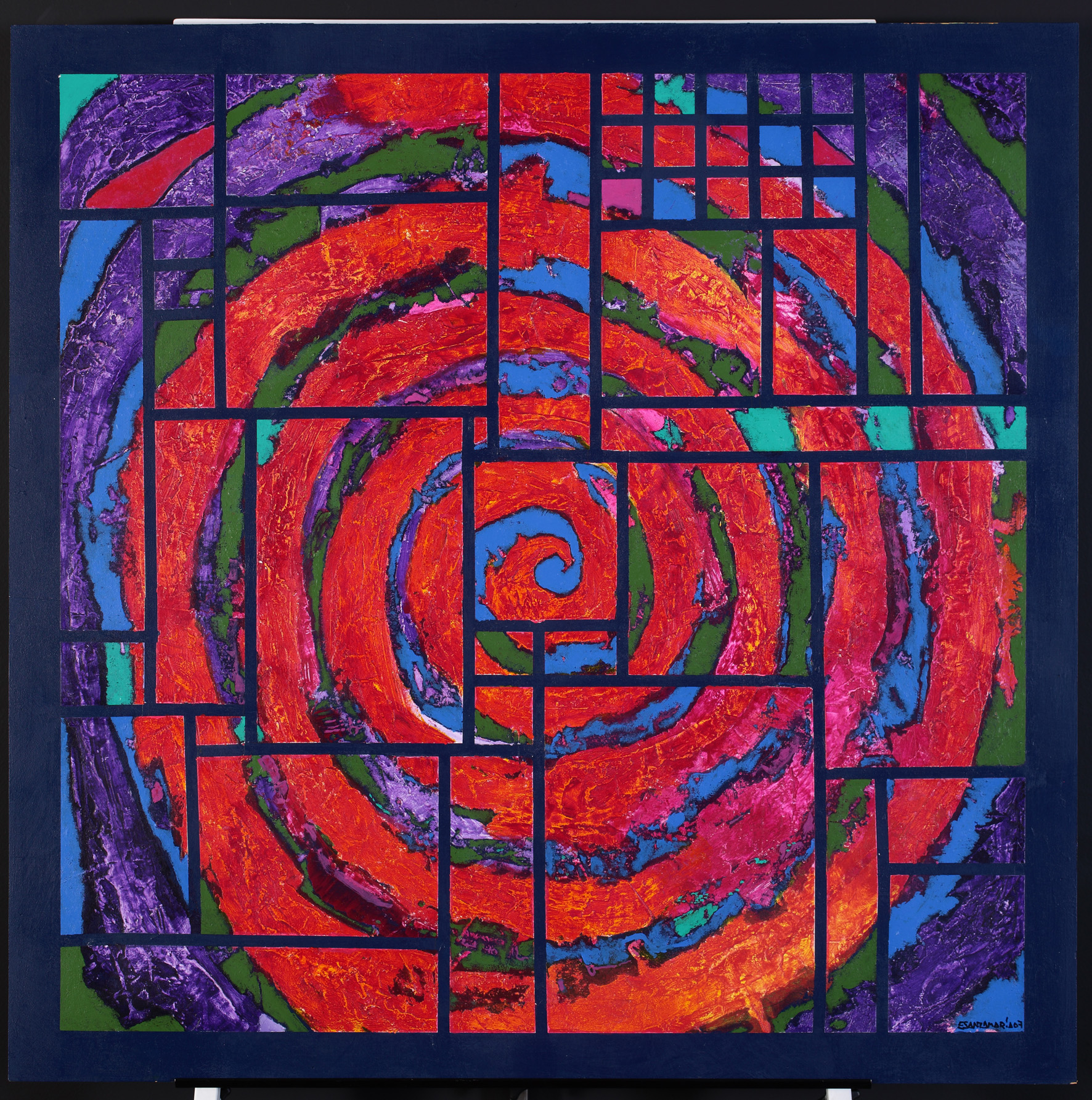 | Deskribapena: | Exposición en Sala Luis de Ajuria Técnica: Pintura acrílica Materia-soporte: Tablero Fecha de ejecución: 2007 Circulo en tonos rojos y seccionado con fondos azules y verdes. Firmada en ángulo inferior derecho y en parte trasera. |