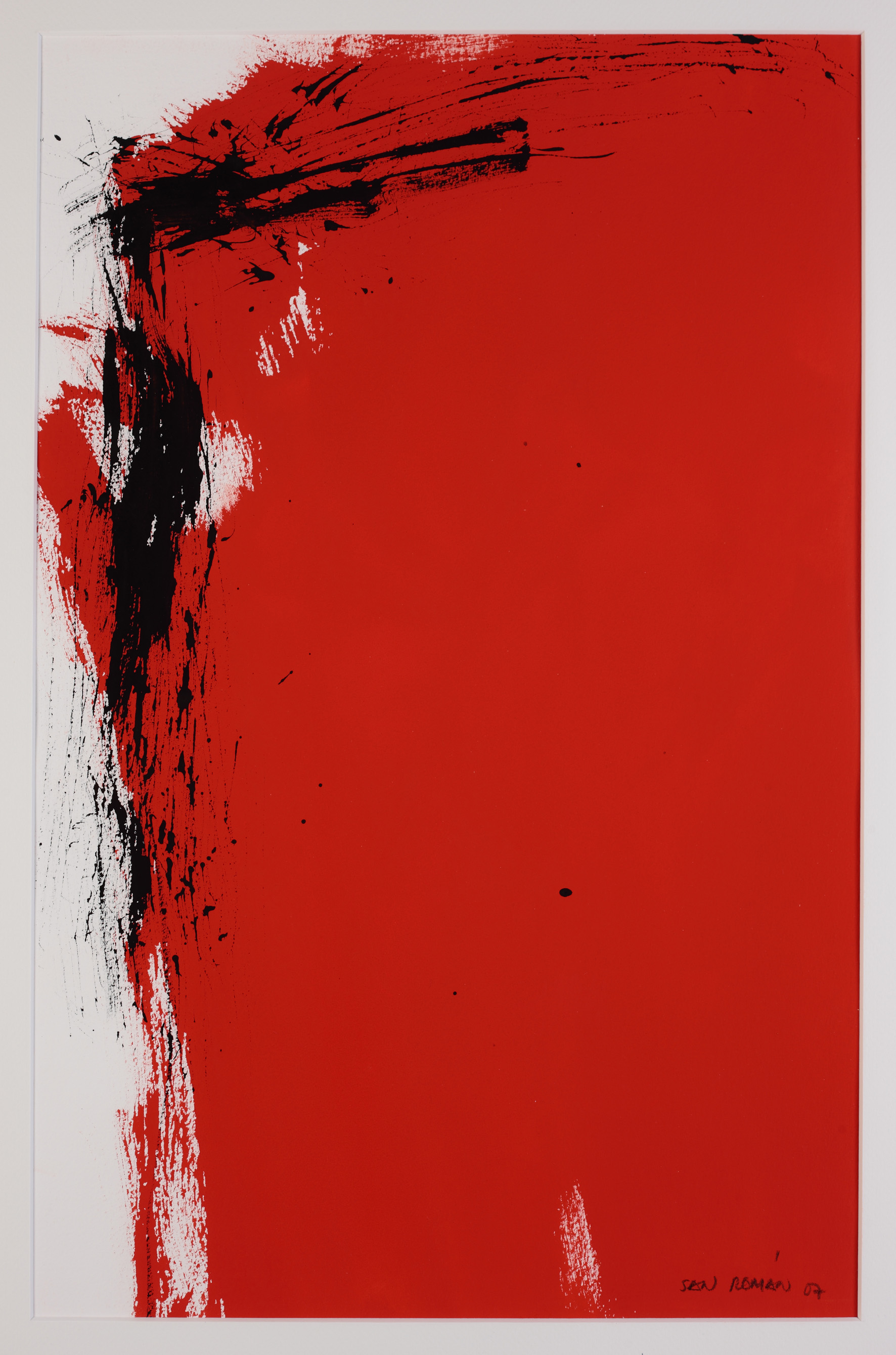 Fondos rojos con grafismos negros. El conjunto de 20 obras individuales componen una obra sola.