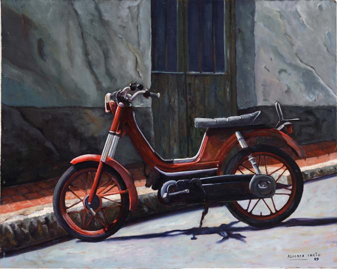| Deskribapena: | Exposición en Sala Luis de Ajuria Técnica: Óleo Materia-soporte: Tablero Fecha de ejecución: 1999 Vespino apoyada sobre la acera y, al fondo, una puerta. Firmada y fechada en ángulo inferior derecho. |