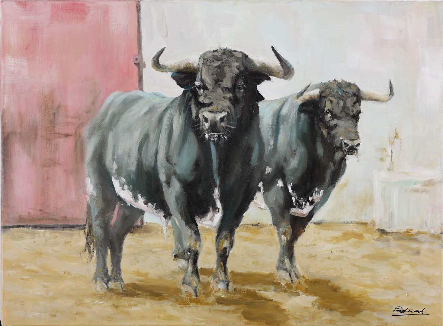 | Resumen: | Exposición en Sala Luis de Ajuria Técnica: Pintura-Óleo Materia-soporte: Lienzo-Madera Fecha de ejecución: 2009 Sobre un fondo en tonos rosa y gris azulado, dos toros en posición frontal. Firmada en ángulo inferior derecha. |