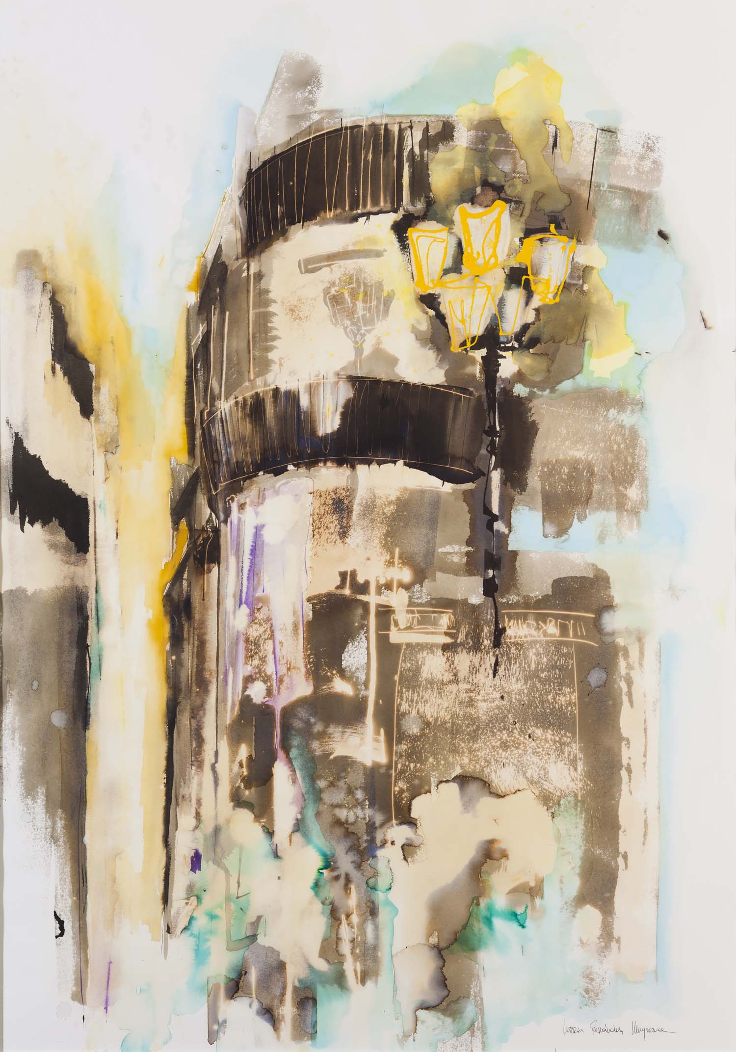 | Deskribapena: | Exposición en Sala Luis de Ajuria Técnica: Óleo-Mixta Materia-soporte: Papel Esquina de una calle con cinco farolas. Firmada en ángulo inferior derecho. |