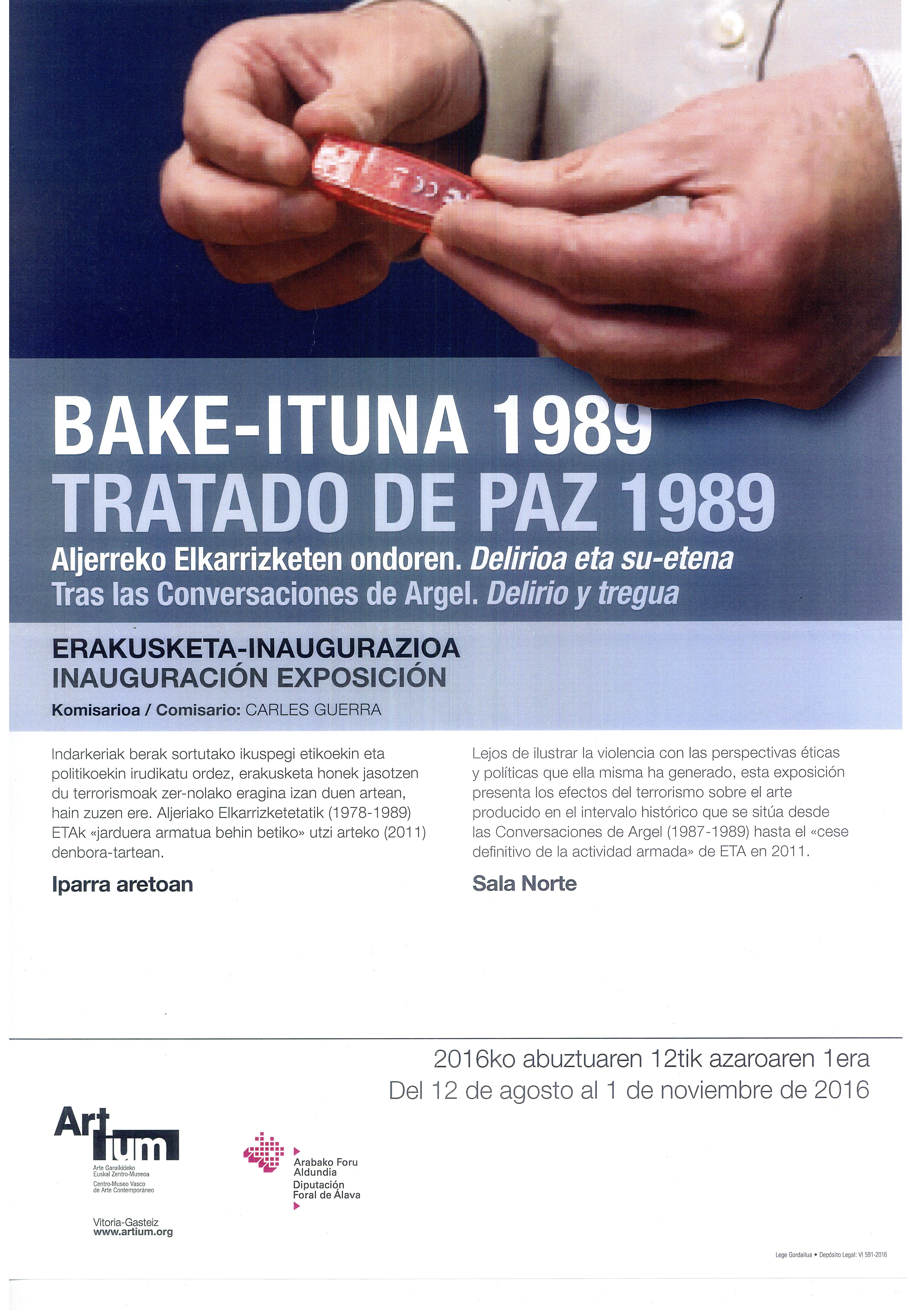 Título: Bake ituna 1989 [Material gráfico] : Aljerreko Elkarrrizketen ondoren, "delirioa eta su-etena" : erakusketa-inaugurazioa = Tratado de paz 1989 : tras las Conversaciones de Argel, "delirio y tregua".