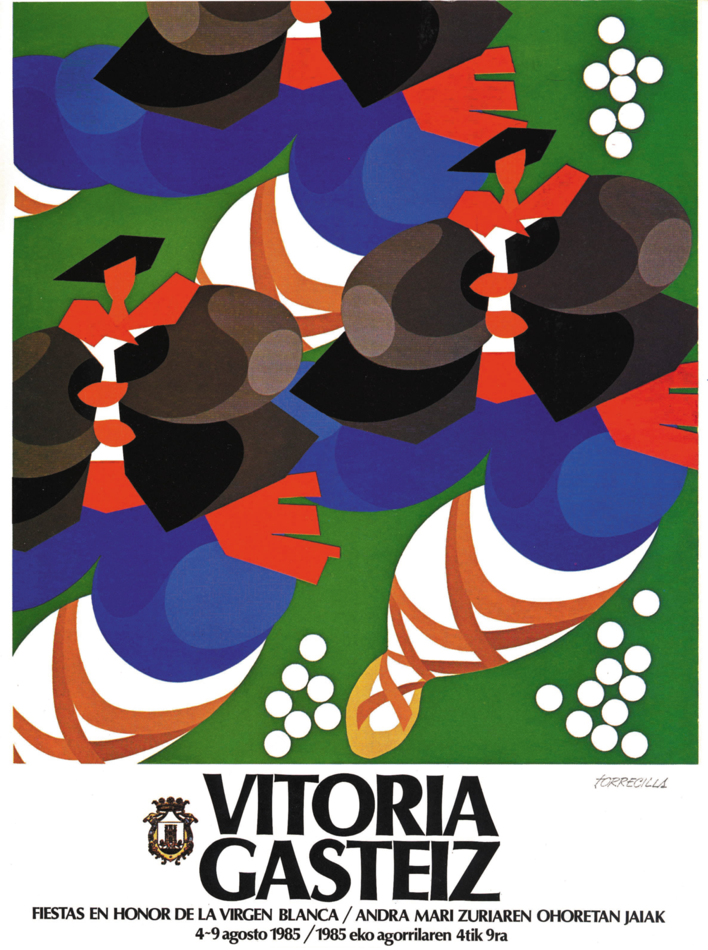 Izenburua: Vitoria-Gasteiz [Material gráfico] : fiestas en honor de la Virgen Blanca : 4-9 agosto 1985 = Andra Mari Zuriaren omenezko jaiak : 1985eko agorrilaren 4tik 9ra : turismoarentzatc/ Torrecilla.