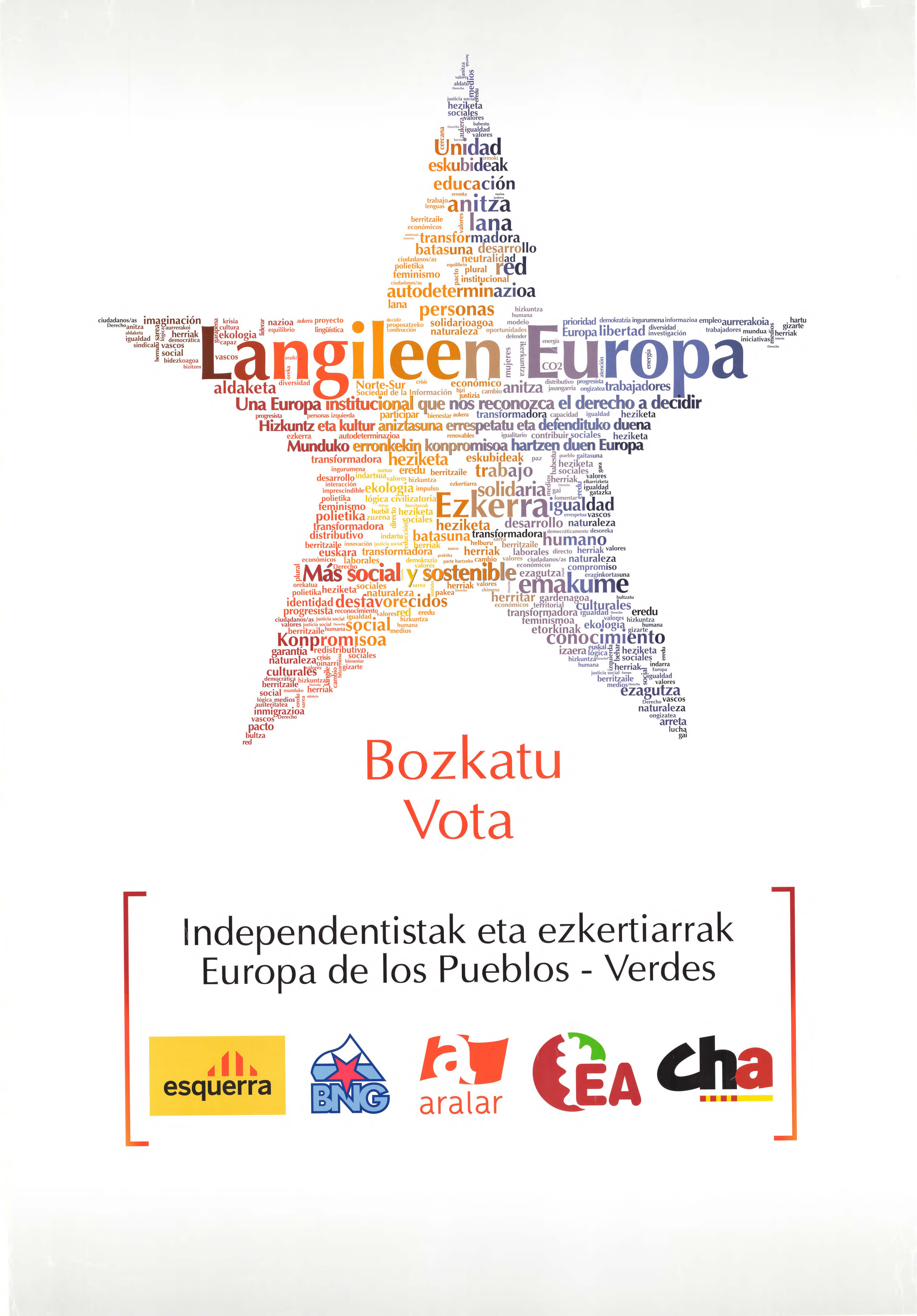 Título: Langileen Europa [Material gráfico] : bozkatu : Independentistak eta Ezkertiarrak = vota : Europa de los Pueblos - Verdes.