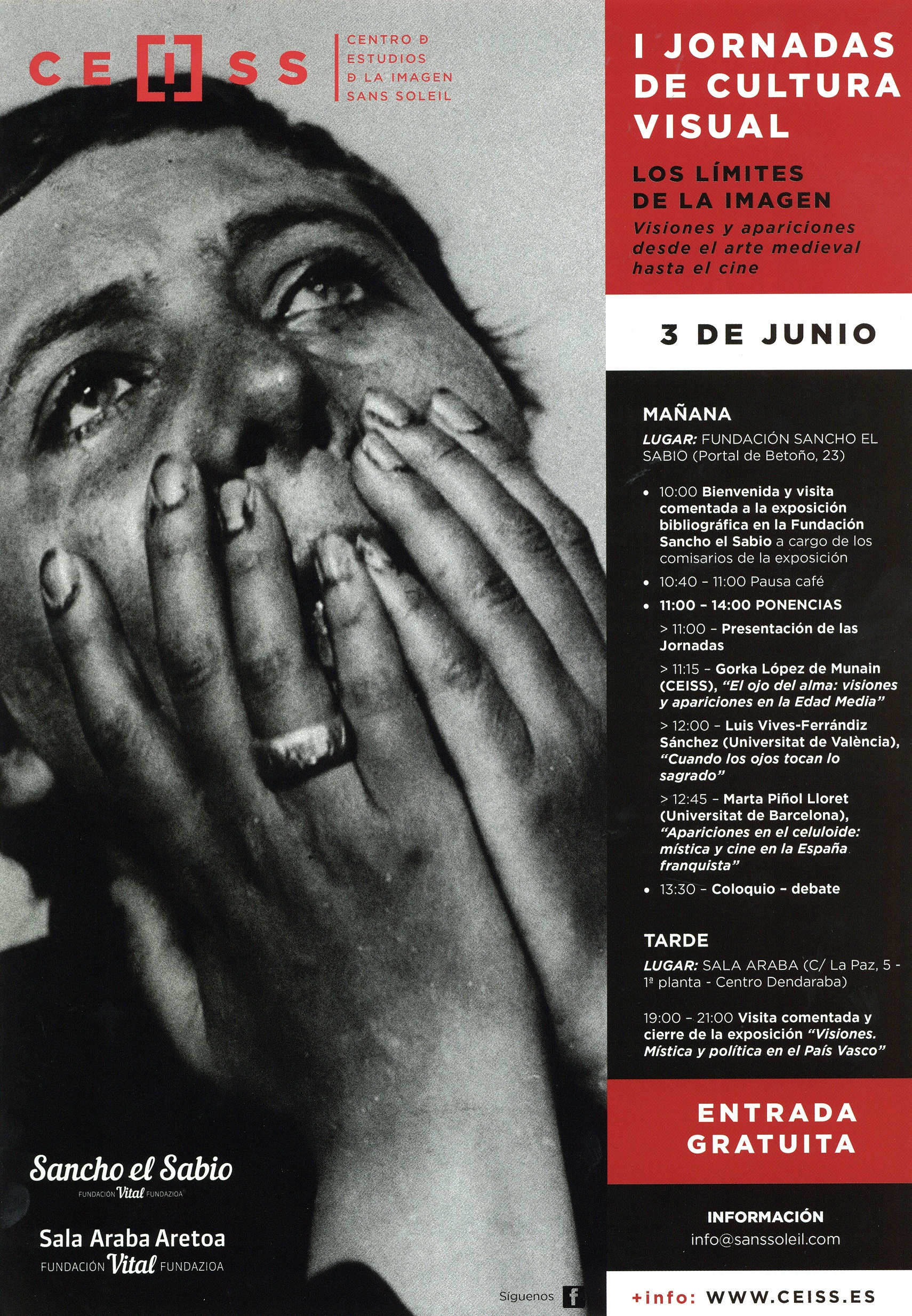 Izenburua: I Jornadas de Cultura Visual [Material gráfico] : los límites de la imagen : 3 de junio : [organizadas por] CEISS, Centro de Estudios de la Imagen Sans Soleil / [diseño de Mikel Escalera].