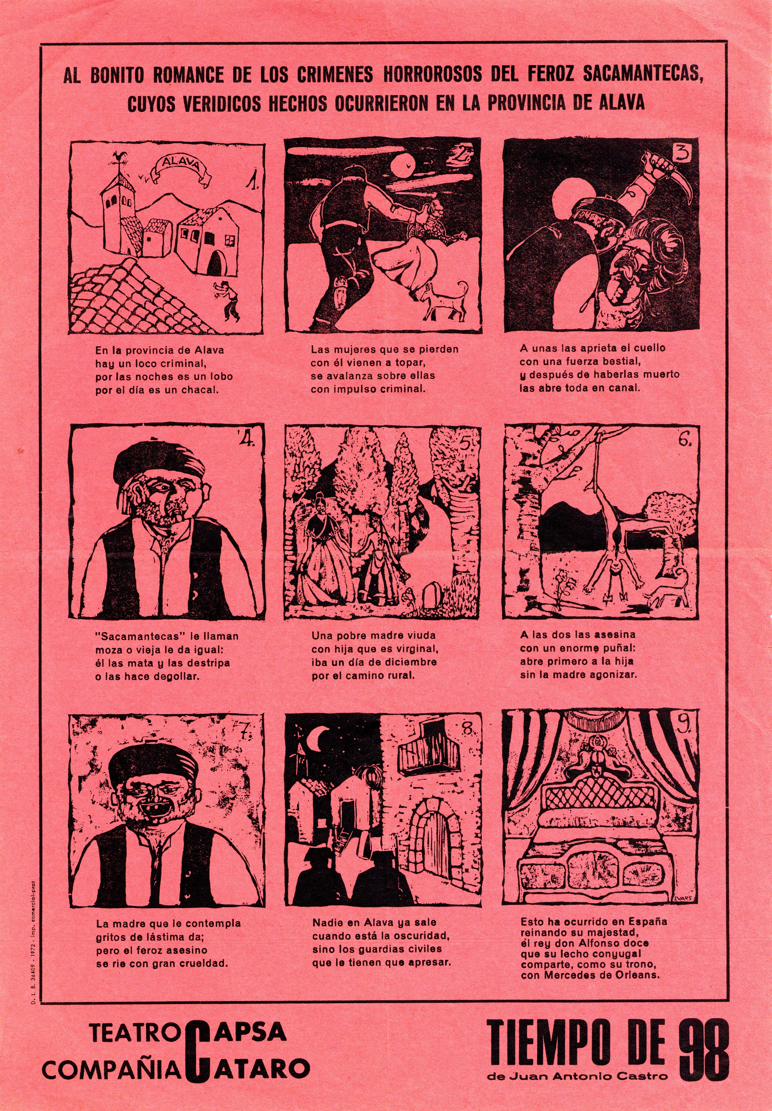Título: Al bonito romance de los crímenes horrorosos del feroz Sacamantecas, cuyos verídicos hechos ocurrieron en la provincia de Álava [Material gráfico] / [dibujos de Ivars].