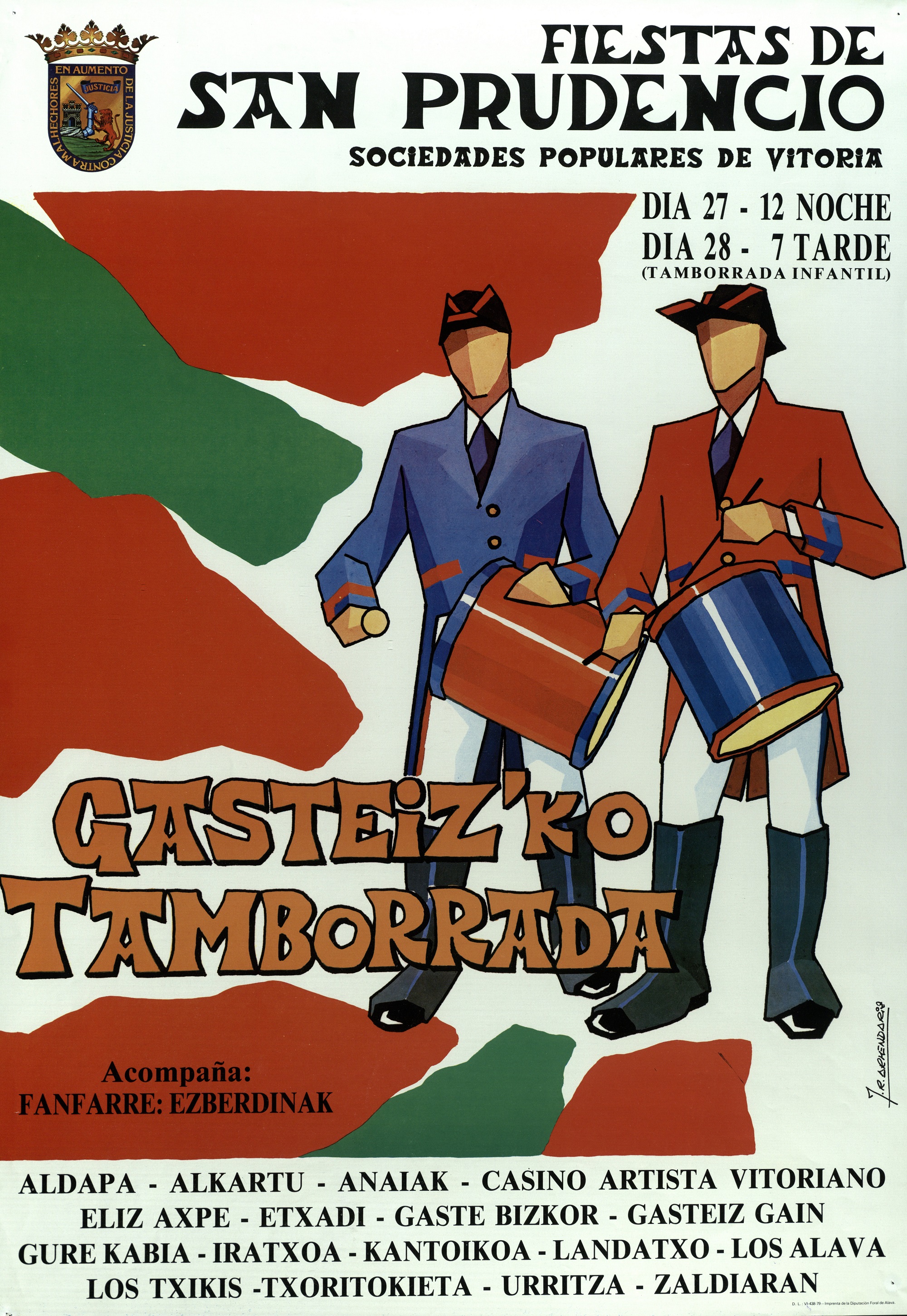 | Izenburua: | Gasteiz'ko Tamborrada [Material gráfico] : fiestas de San Prudencio : sociedades populares de Vitoria : día 27-12 noche, día 28-7 tarde (tamborrada infantil) / J.R. Armendariz. |