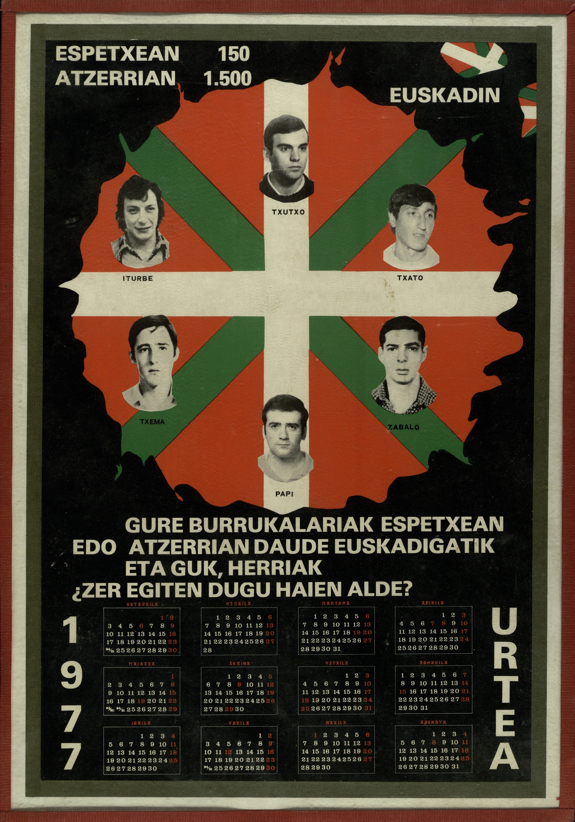 | Izenburua: | 1977 urtea [Material gráfico] : gure burrukalariak espetxean edo atzerrian daude Euskadigatik eta guk, herriak ¿zer egiten dugu haien alde? : espetxean 150, atzerrian 1.500, Euskadin Iturbe, Txutxo, Txato, Txema, Papi, Zabalo. |