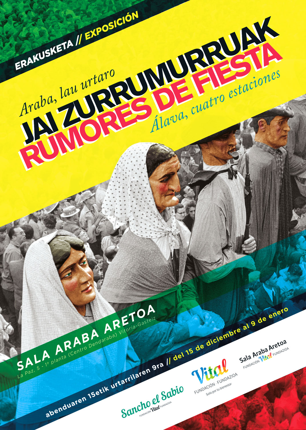| Título: | Jai zurrumurruak [Material gráfico] : Araba, lau urtaro : abenduaren 15etik urtarrilaren 9ra = Rumores de fiesta : Álava, cuatro estaciones : del 15 de diciembre al 9 de enero / [diseño de Mikel Escalera]. |