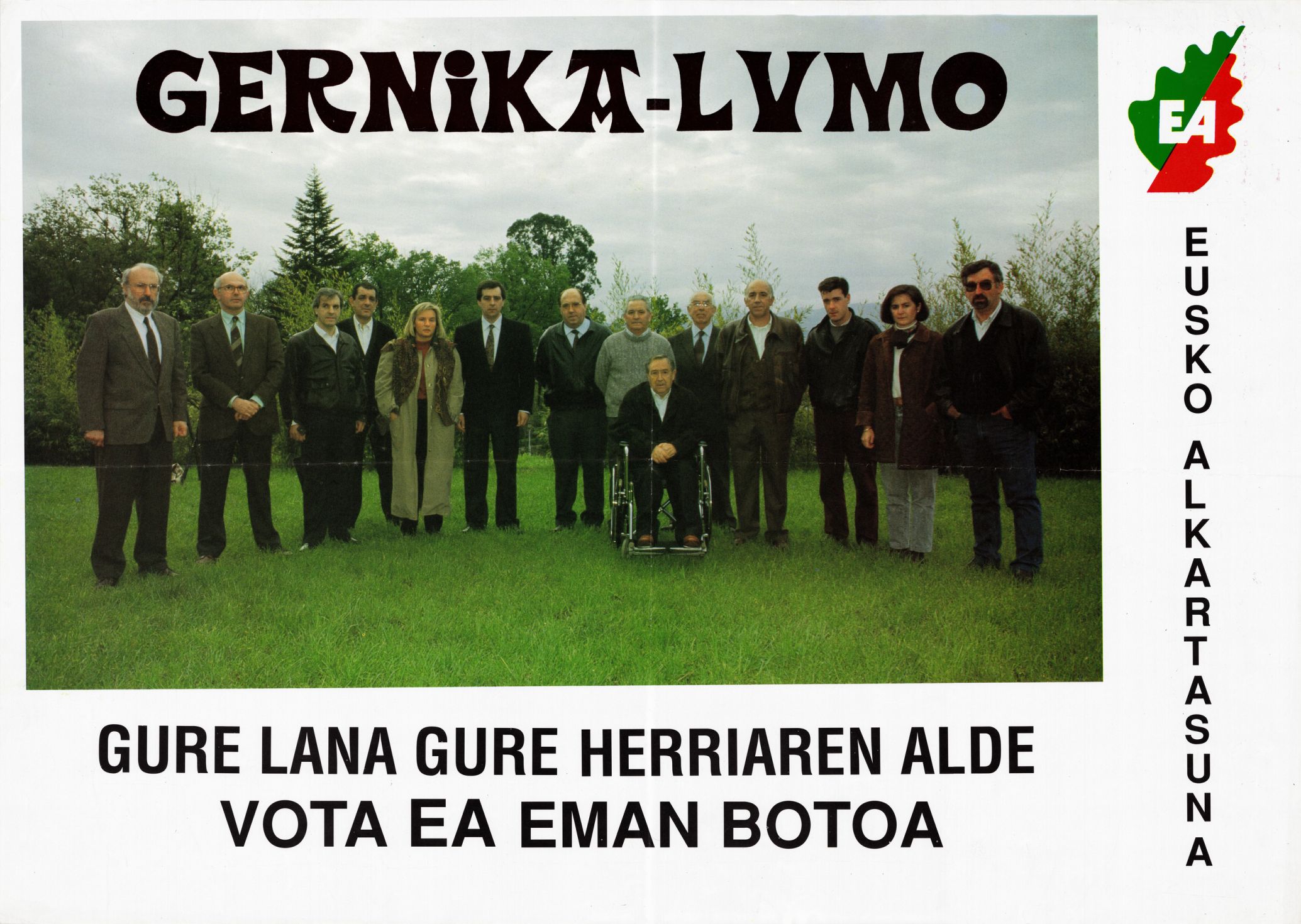Título: Gernika-Lumo [Material gráfico] : gure lana gure herriaren alde = vota EA eman botoa : EA Eusko Alkartasuna