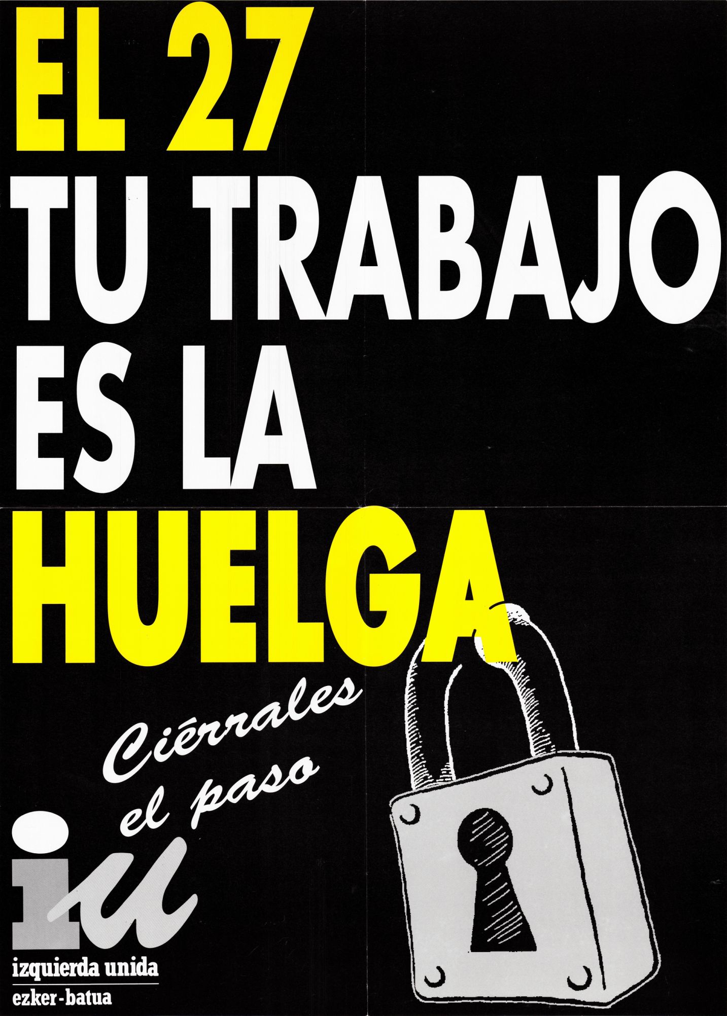 Título: El 27 tu trabajo es la huelga [Material gráfico] : ciérrales el paso : IU izquierda Unida Ezker Batua
