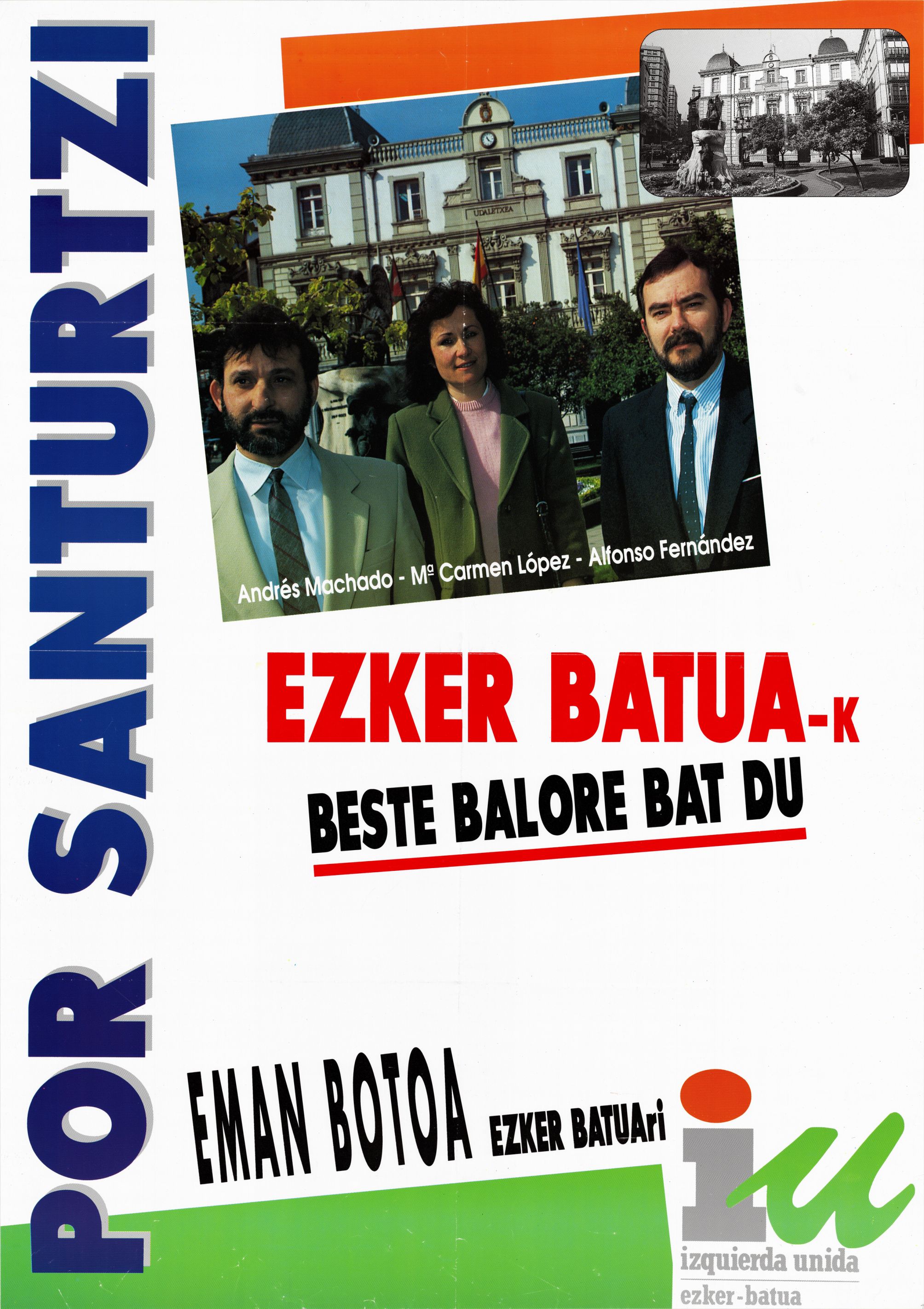 Título: Por Santurtzi [Material gráfico] : Ezker Batua-k beste balore bat du : eman botoa Ezker Batuari : IU Izquierda Unida Ezker Batua : Andrés Machado, Ma. Carmen López, Alfonso Fernández