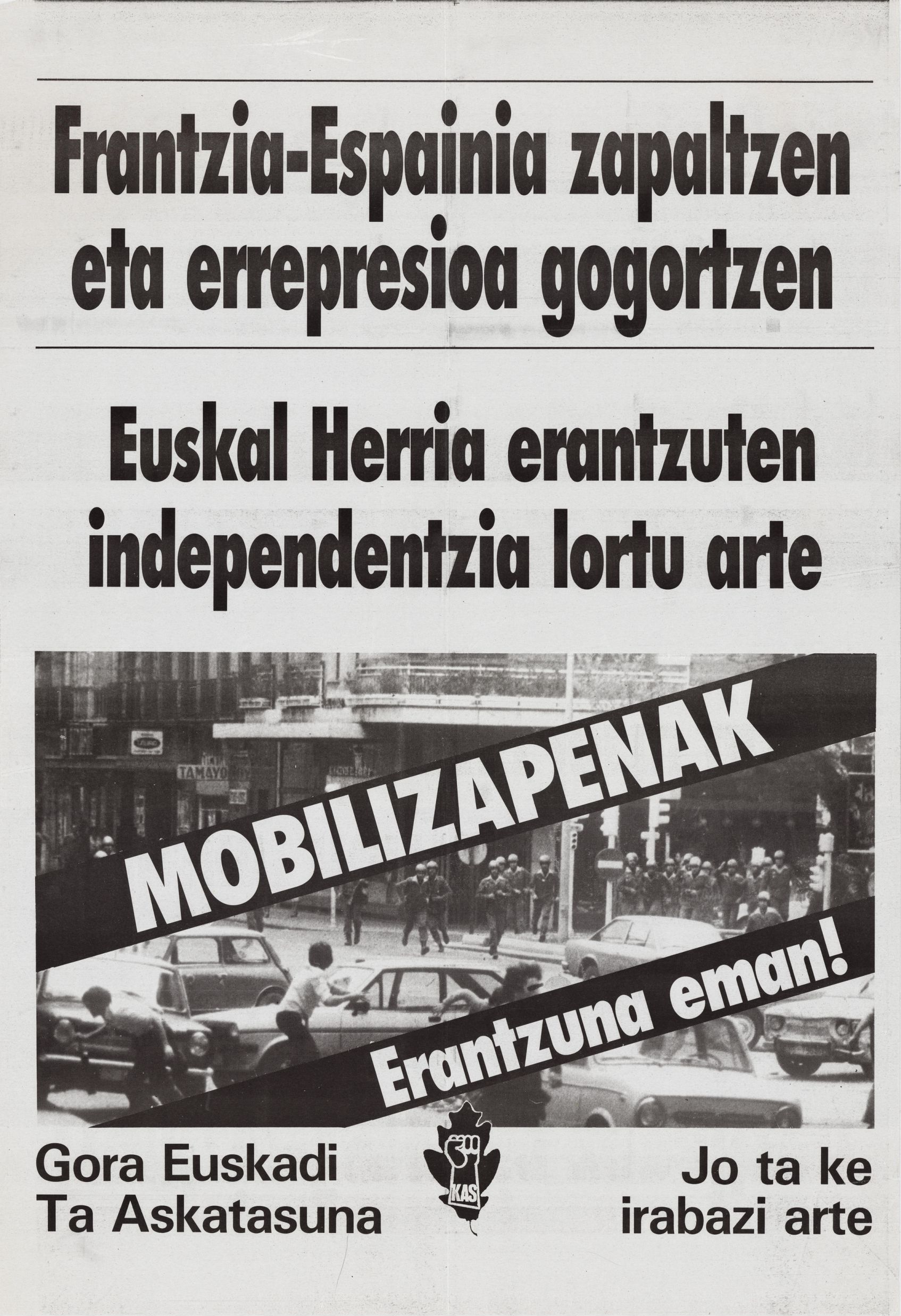 Título: Frantzia-Espainia zapaltzen eta errepresioa gogortzen [Material gráfico] : mobilizapenak erantzuna eman! : gora Euskadi ta askatasuna : jo ta ke irabazi arte : KAS