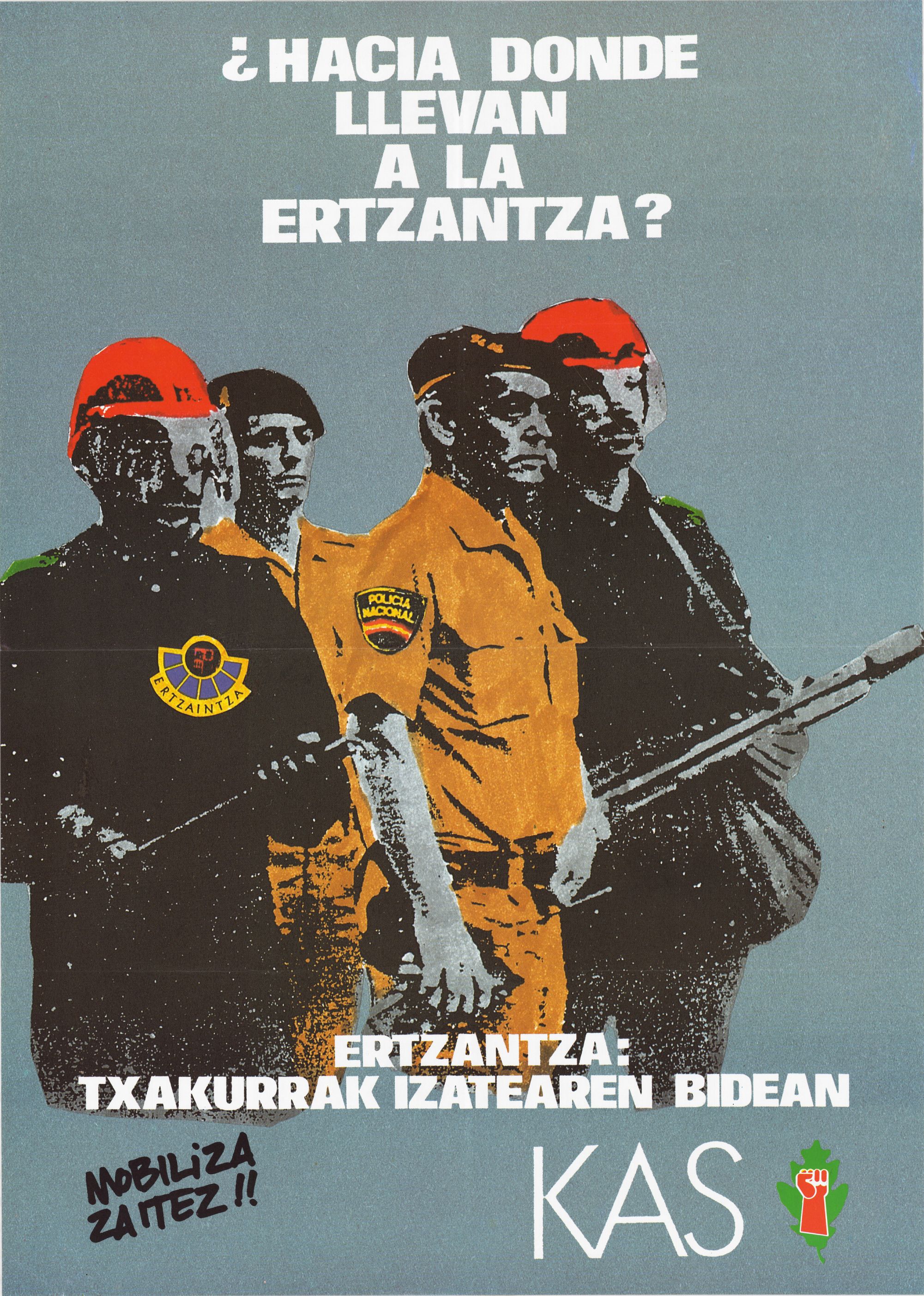 Título: Hacia dónde llevan a la Ertzantza? [Material gráfico] Ertzantza, txakurrak izatearen bidean : mobiliza zaitez!! : KAS