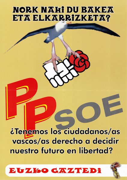 Título: Nork nahi du bakea eta elkarrizketa? [Material gráfico] : PPSOE tenemos los ciudadanos/as vascos/as derecho a decidir nuestro futuro en libertad? : Euzko Gaztedi