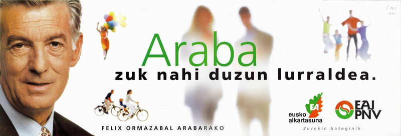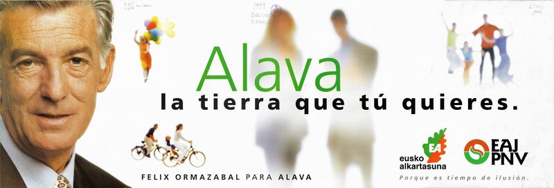 Título: Álava, la tierra que tú quieres [Material gráfico] : Félix Ormazabal para Álava : porque es tiempo de ilusión = Araba, zuk nahi duzun lurraldea : Felix Ormazabal Arabarako : zurekin bateginik : EA Eusko Alkartasuna, EAJ-PNV