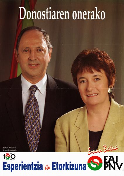 Título: Esperientzia eta etorkizuna [Material gráfico] : Donostiaren onerako : Antton Marquet, Koro Garmendia : eman botoa EAJ-PNV : EAJ 100 urte, PNV 100 años