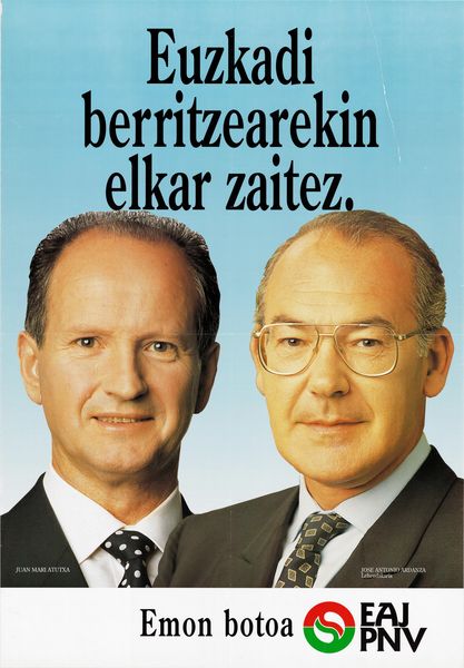 Izenburua: Euzkadi berritzearekin elkar zaitez [Material gráfico] : Juan Mari Atutxa, Jose Antonio Ardanza lehendakaria : emon botoa EAJ-PNV