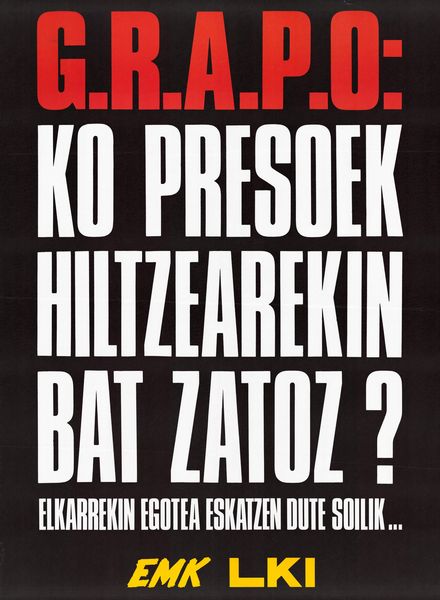 Título: G.R.A.P.O.ko presoek hiltzearekin bat zatoz? [Material gráfico] : elkarrekin egotea eskatzen dute soilik__ : EMK, LKI