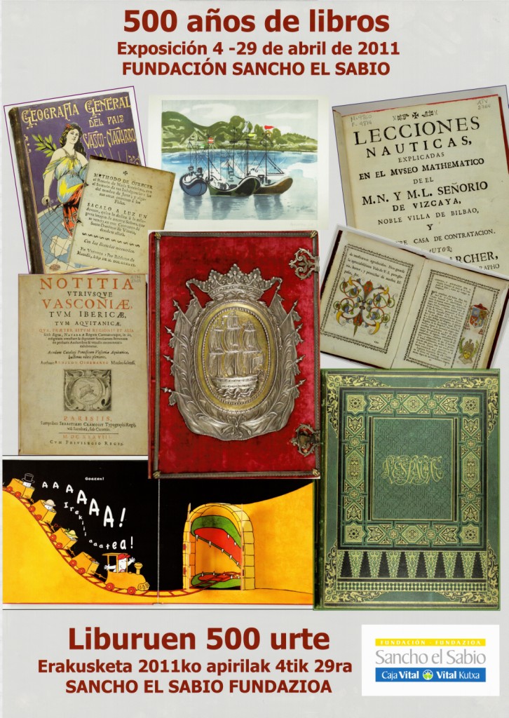 Título: 500 años de libros [Material gráfico] : exposición 4-29 de abril 2011 = Liburuen 500 urte : erakusketa 2011ko apirilak 4tik 29ra : Sancho el Sabio Fundazioa