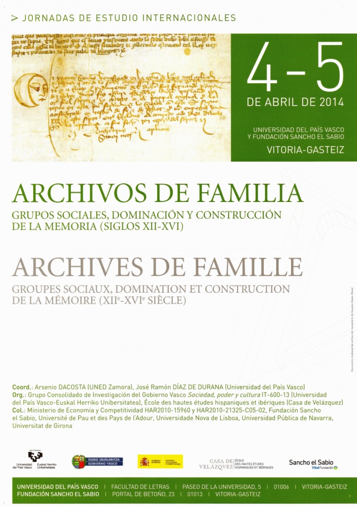 | Deskribapena: | Jornadas organizadas por el Grupo Consolidado de Investigación del Gobierno Vasco Sociedad, poder y cultura IT-600-13 (Universidad del País Vasco-Euskal Herriko Unibersitatea), École des Hautes Études Hispaniques et Ibériques (Casa de Velázquez), con la colaboración del Ministerio de Economía y Competitividad HAR2010-15960 y HAR2010-21325-C05-02, Fundación Sancho el Sabio, Université de Pau et des Pays de l?Adour, Universidade Nova de Lisboa, Universidad Pública de Navarra, Universitat de Girona |