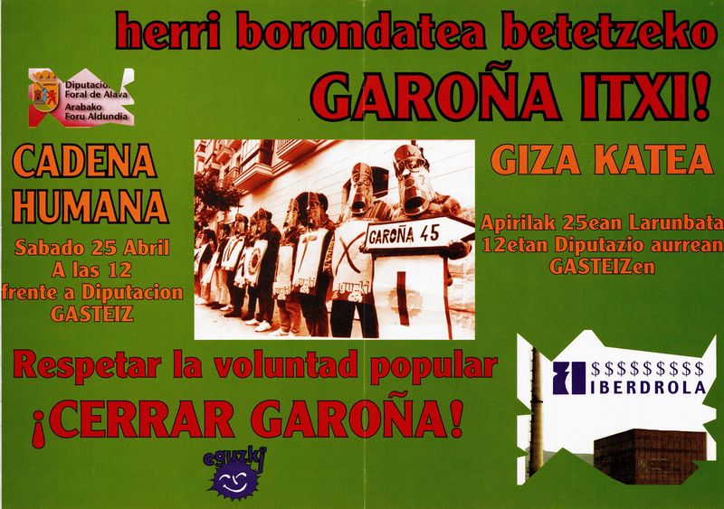 | Izenburua: | Herri borondatea betetzeko [Material gráfico] : Garoña itxi! : giza katea = cadena humana |