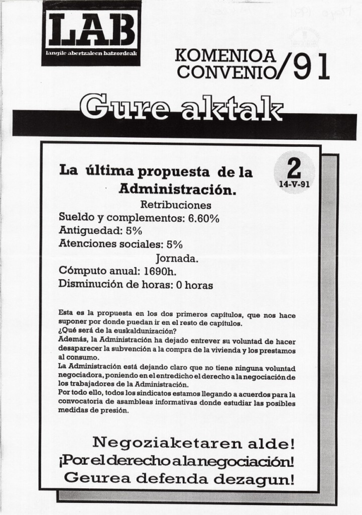 Título: Komenioa 91 [Material gráfico] : gure aktak... = Convenio 91
