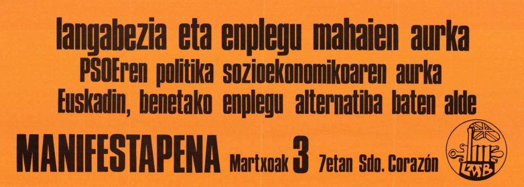 Izenburua: Langabezia eta enplegu mahaien aurka PSOEren politika sozioekonomikoaren aurka Euskadin, benetako enplegu alternatiba baten alde [Material gráfico] : manifestapena...
