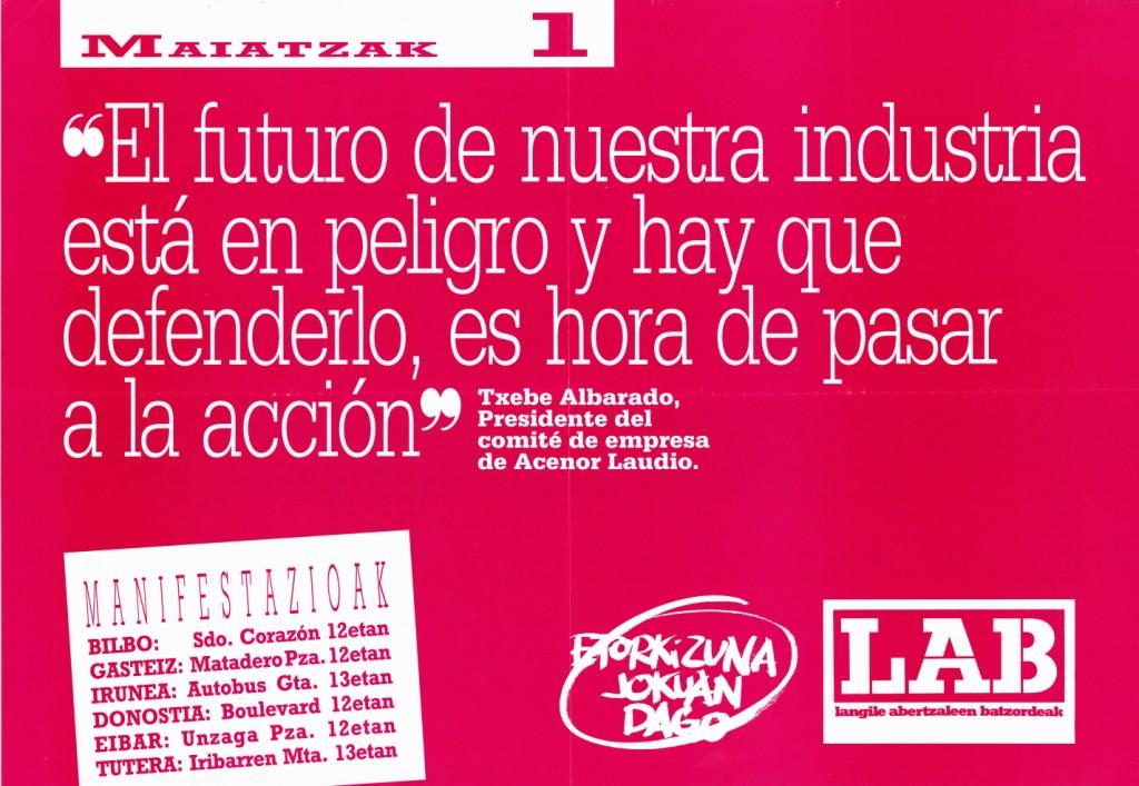 Título: Maiatzak 1 [Material gráfico] : "el futuro de nuestra industria está en peligro y hay que defenderlo, es hora de pasar a la acción..."