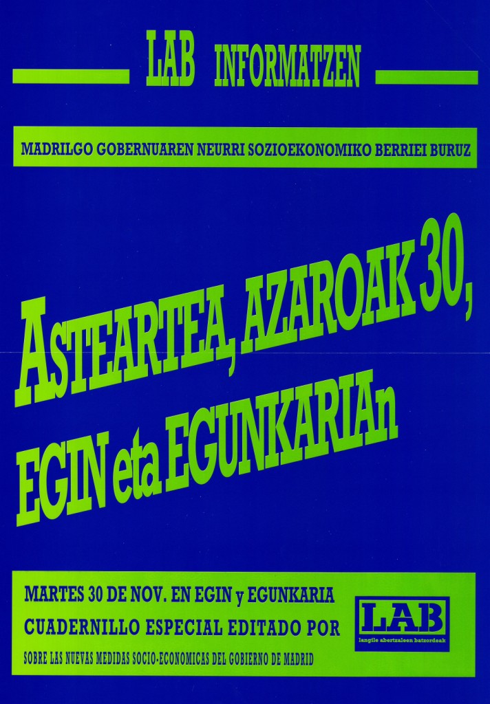 Izenburua: LAB informatzen [Material gráfico] : Madrilgo gobernuaren neurri sozioekonomiko berriei buruz : asteartea, azaroak 30, Egin eta Egunkarian...
