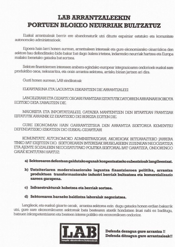 Título: LAB arrantzaleekin portuen blokeo neurriak bultzatuz... [Material gráfico]