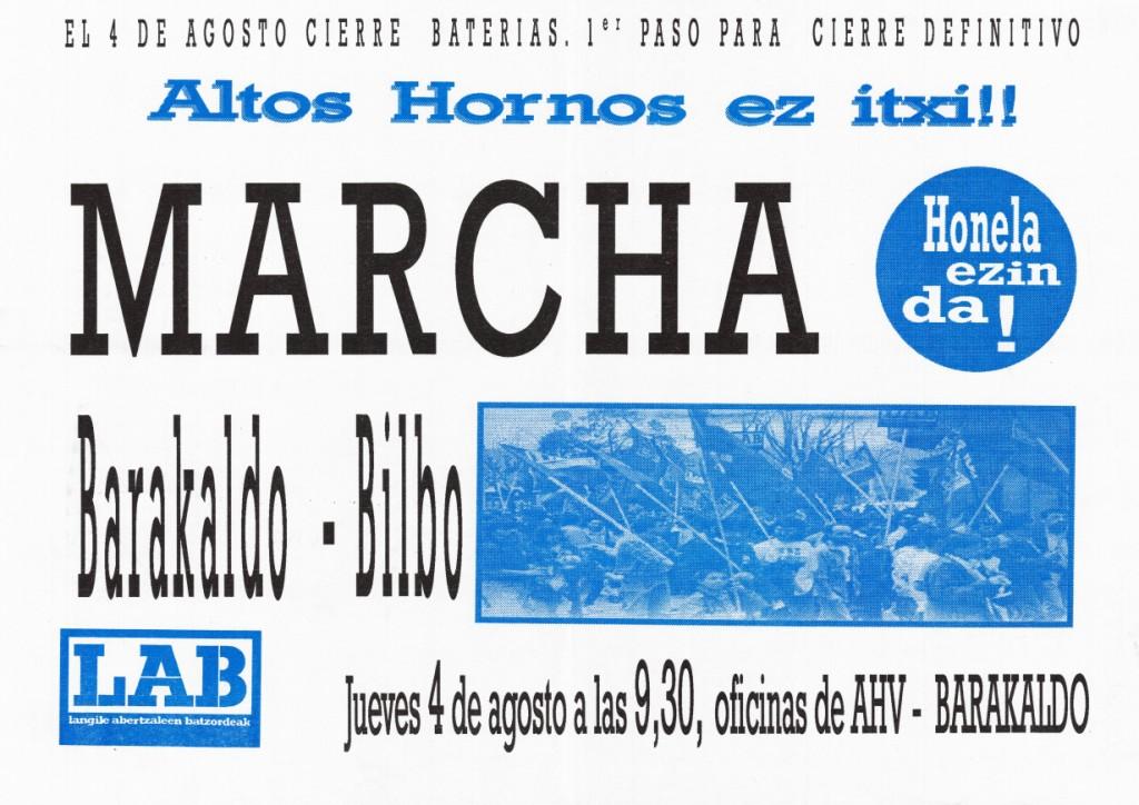 Título: Altos Hornos ez itxi!! [Material gráfico] : el 4 de agosto cierre bateria : 1. paso para cierre definitivo : marcha Barakaldo-Bilbo...