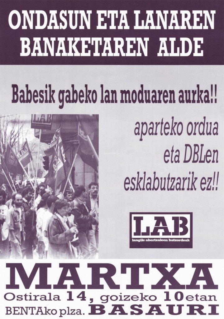 Título: Ondasun eta lanaren banaketaren alde [Material gráfico] : martxa...