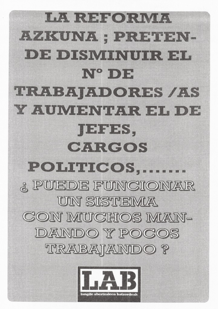 Título: La reforma Azkuna pretende disminuir el no. de trabajadores-as... [Material gráfico]